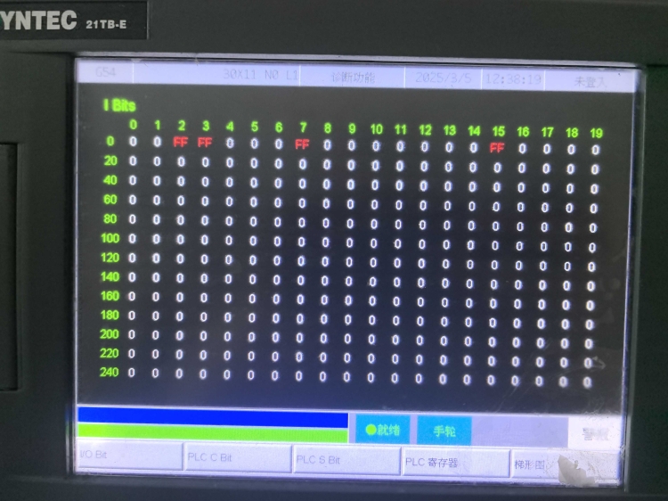 检查PLC状态,发现是锁紧信号未断开,7号等长亮,(此前遇到一次推出信号未送达,导致刀塔推出失败)